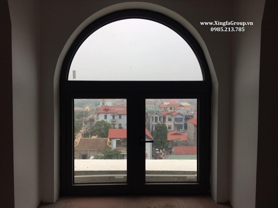 Mẫu cửa sổ nhôm Xingfa kết hợp uốn mái vòm cong trên cùng một khuôn cửa