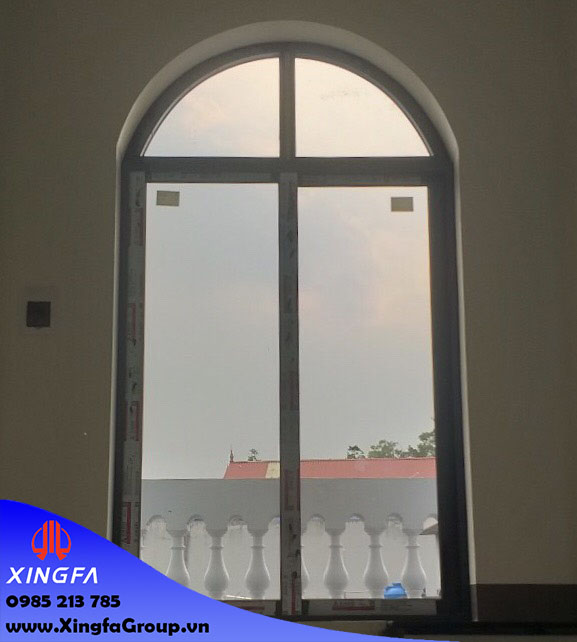 + Vách kính cố định mái vòm nhôm Xingfa lắp đặt cùng cửa sổ mở quay 1 cánh