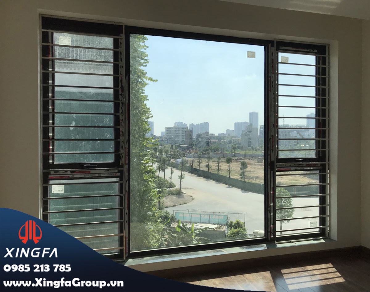 Hình ảnh cửa sổ mở hất 1 cánh nhôm Xingfa + vách kính cố định nhôm Xingfa