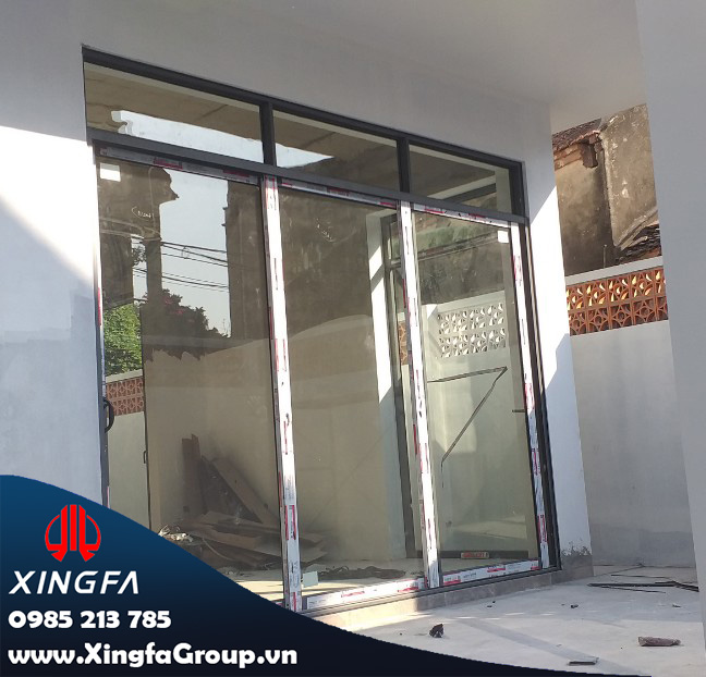 Hình ảnh cửa nhôm Xingfa mở trượt 3 cánh sử dụng kính cường lực 2 lớp
