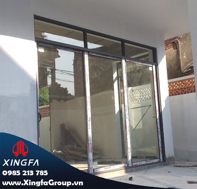 Hình ảnh cửa đi mở trượt nhôm Xingfa + vách kính cố định nhôm Xingfa
