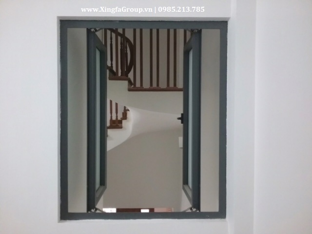 Mẫu cửa sổ nhôm Xingfa mầu ghi sẫm mở quay 2 cánh hệ 55 dày 1.4mm