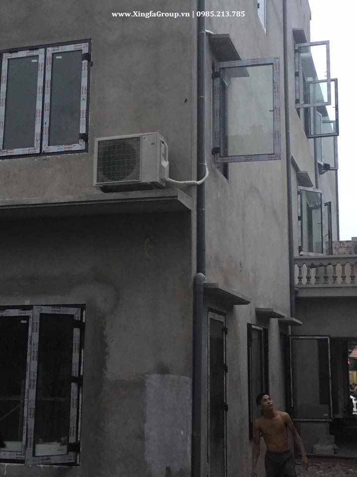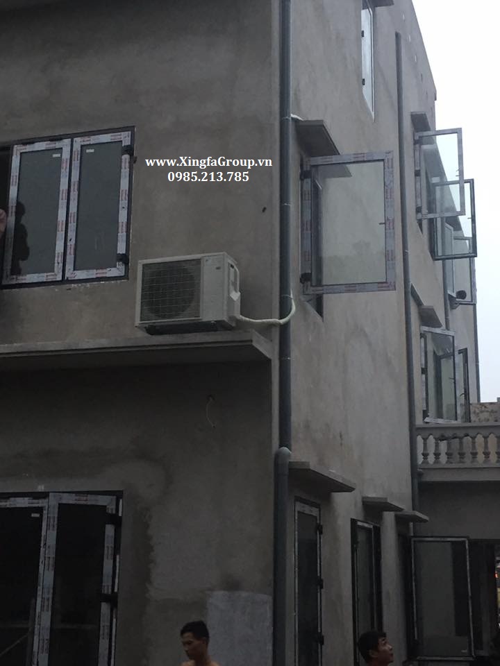+ Mầu nhôm: công trình sử dụng loại cửa nhôm Xingfa mầu nâu sần ánh kim truyền thống