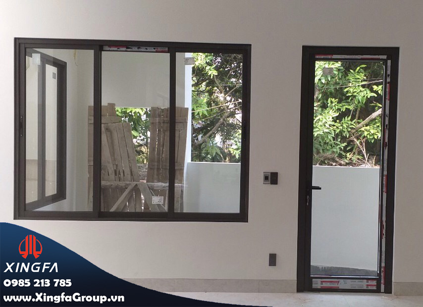Hình ảnh cửa nhôm Xingfa mở quay và vách kính cố định nhôm Xingfa
