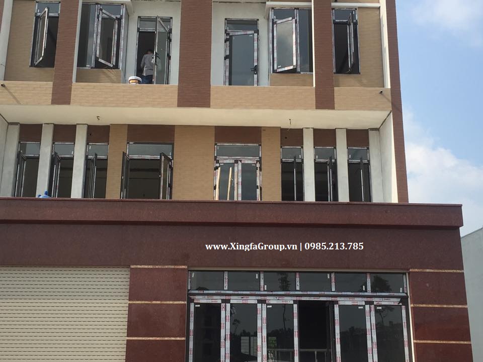 Mầu nhôm: công trình sử dụng mẫu cửa nhôm Xingfa mầu nâu sần ánh kim truyền thống