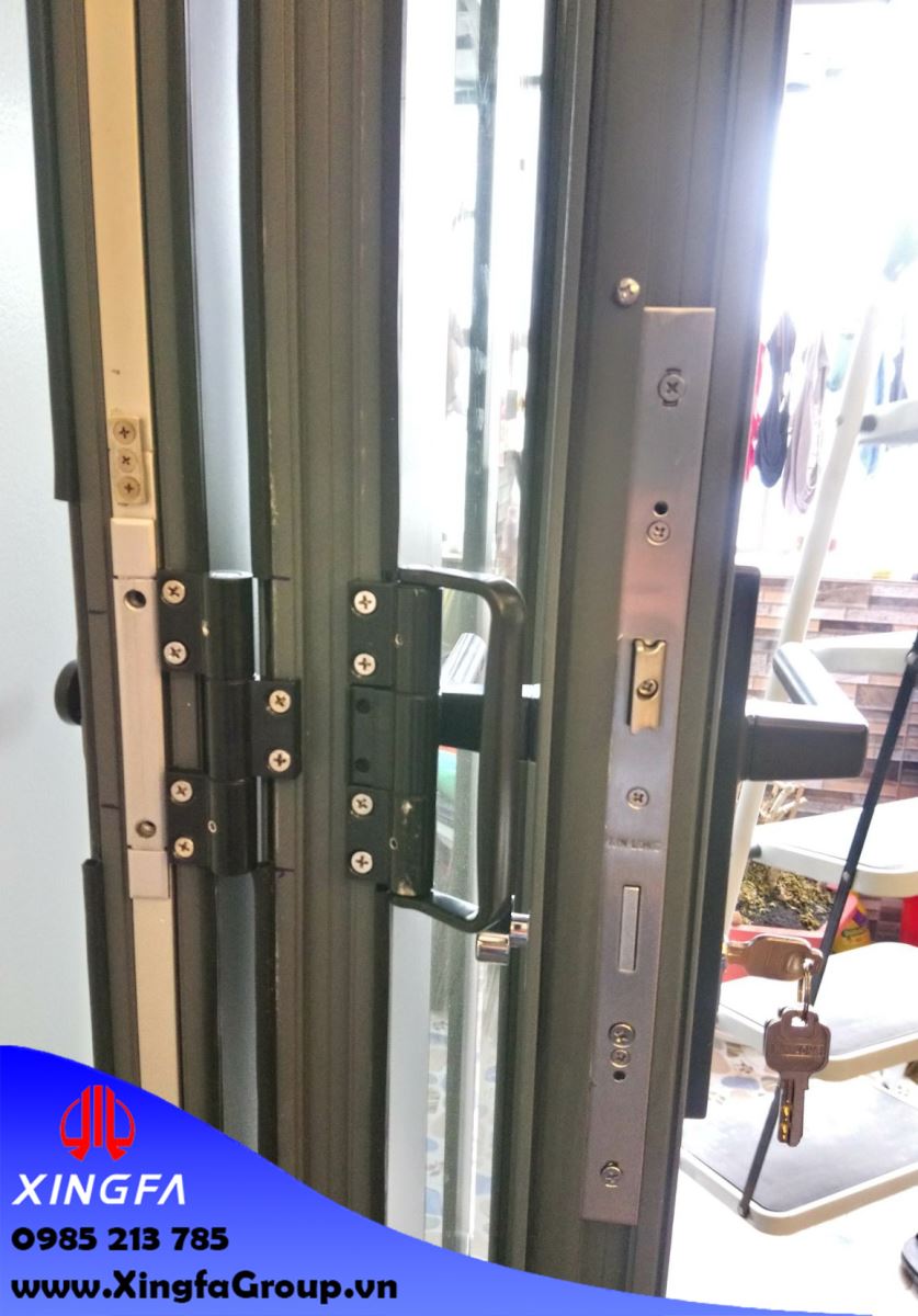 Hình ảnh phụ kiện và bản lề cửa đi mở xếp gấp nhôm Xingfa