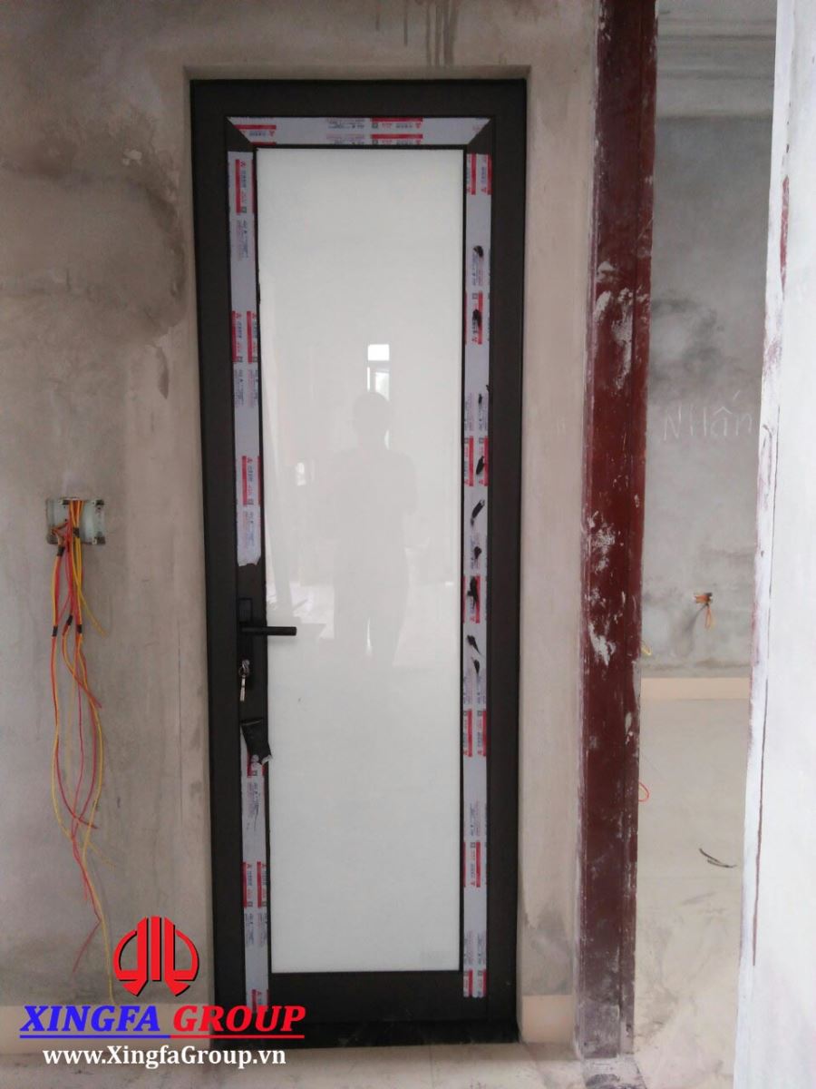 Cửa đi mở quay nhôm Xingfa cùng với kính dán an toàn màu trắng sữa