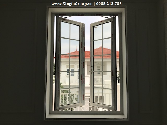 Mẫu cửa sổ mở hất 2 cánh nhôm Xingfa dùng kính hộp cách âm cách nhiệt