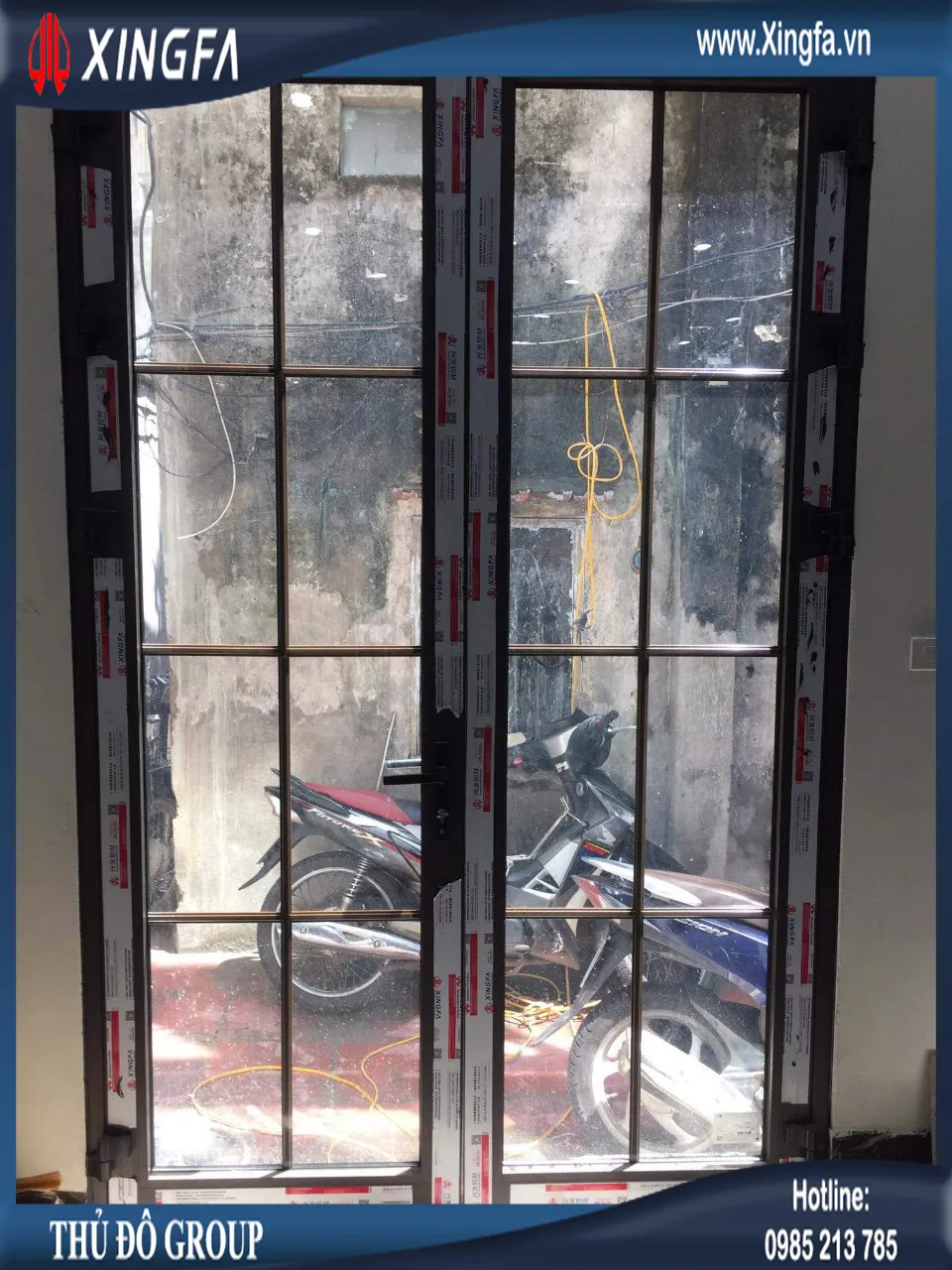 Hình ảnh cửa đi mở quay 2 cánh nhôm Xingfa nhập khẩu chính hãng