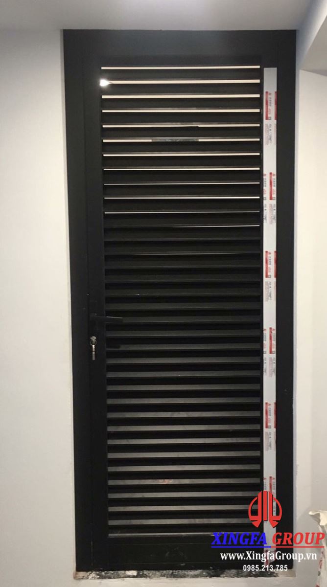 Cửa đi mở quay 1 cánh kết hợp giữa kính dán an toàn và chớp nhôm Xingfa