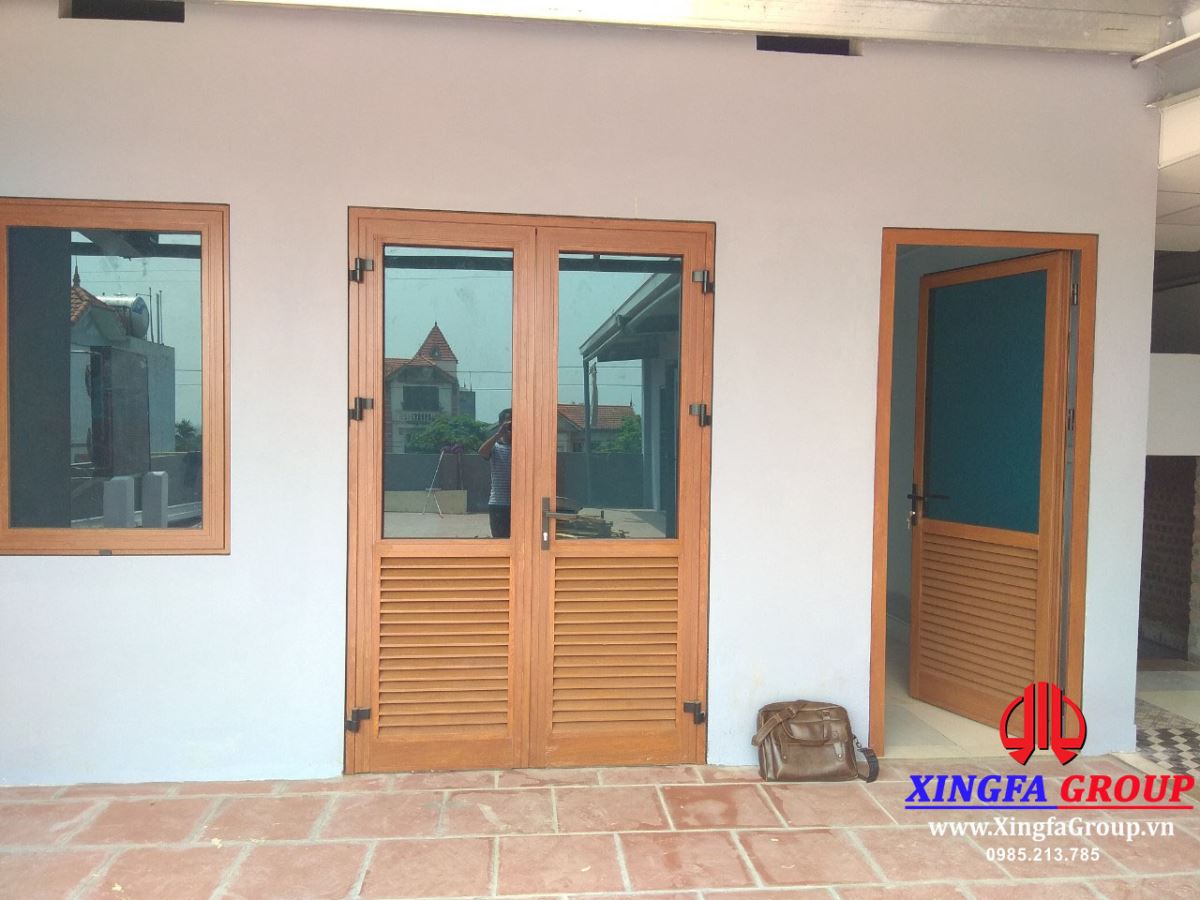 Cửa đi mở quay 1 cánh nhôm Xingfa màu vân gỗ