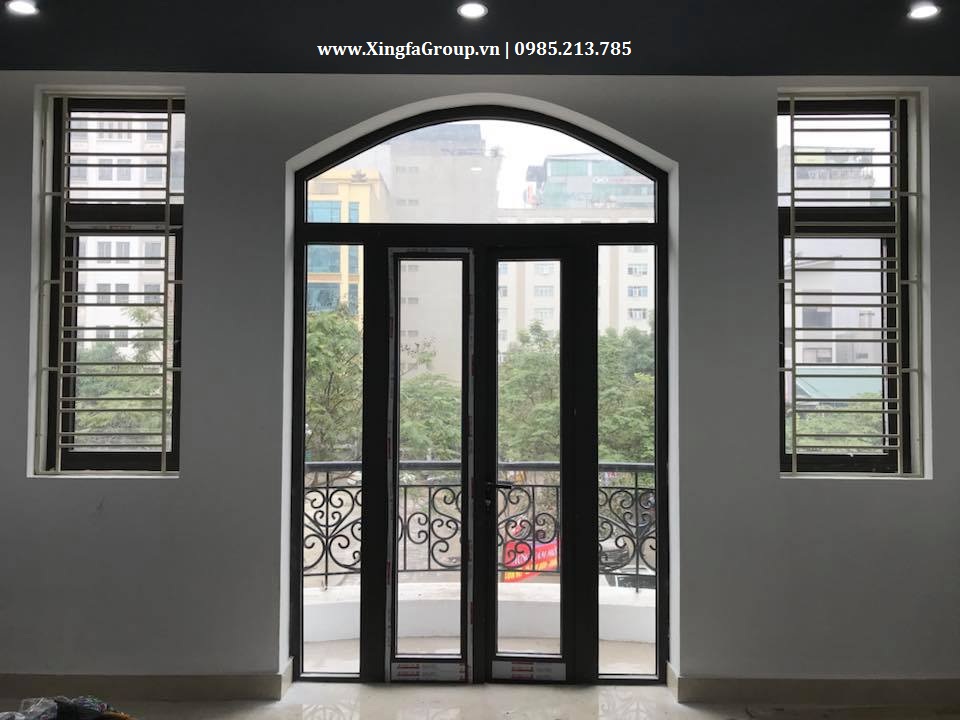 Mẫu cửa đi nhôm Xingfa sử dụng mẫu uốn mái vòm cong bên trên
