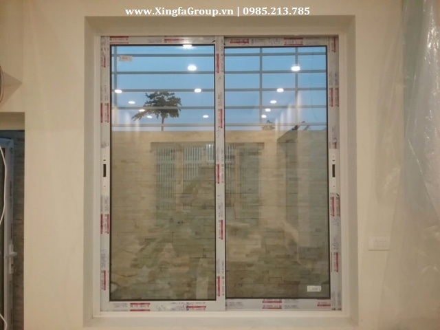 Mẫu cửa sổ mở trượt 2 cánh nhôm Xingfa dùng chốt âm sập