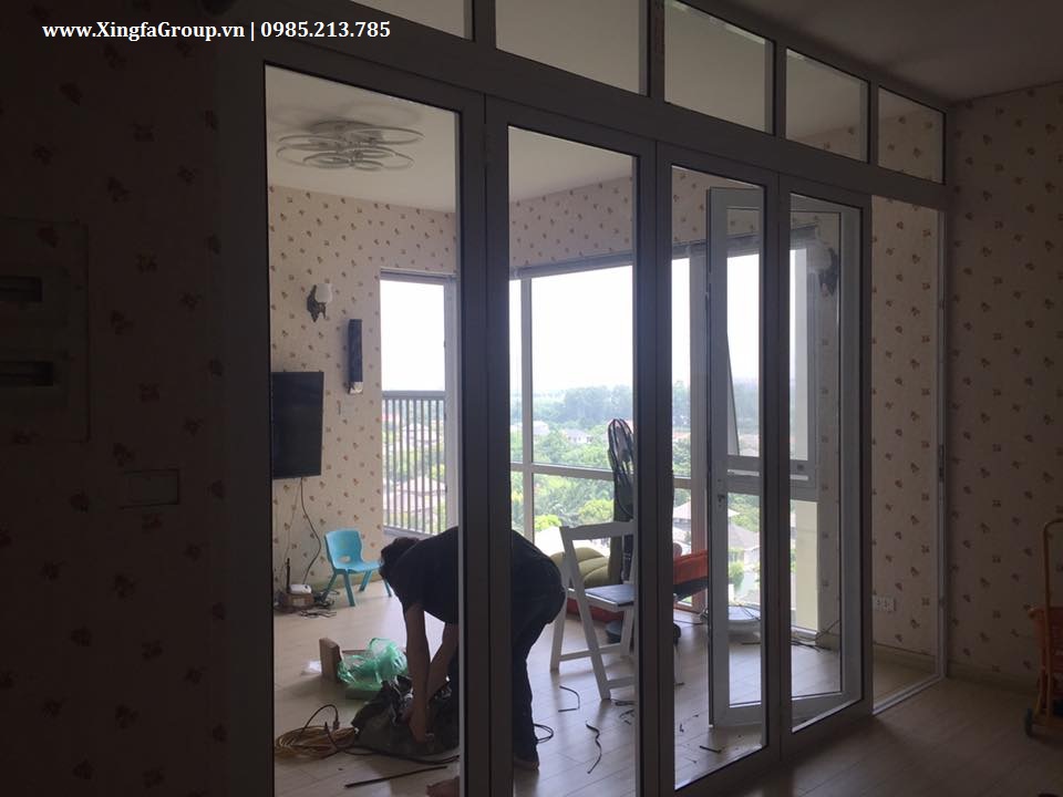 Xingfa Group tiếp tục cập nhật những hình ảnh thực tế mới nhất về thi công lắp đặt cửa nhôm XINGFA nhập khẩu đồng bộ chính hãng 100% tem đỏ Quảng Đông sử dụng tương thích phụ kiện kim khí Kinlong cao cấp tại nhà anh Việt ở Vườn Tùng, KĐT Ecopark.