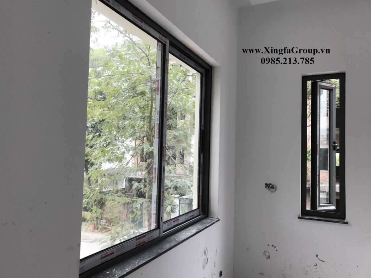 Hình ảnh bộ cửa sổ trượt lùa nhôm Xingfa nhập khẩu và bộ cửa sổ mở quay một cánh nhôm Xingfa nhập khẩu sử dụng thanh profile nhôm Xingfa hệ 93 dày 2.0mm và thanh nhôm Xingfa hệ 55 dày 1.4mm tại công trình.