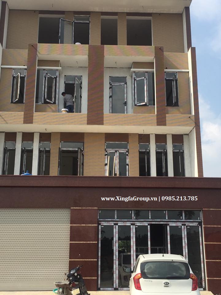 Mầu nhôm: công trình sử dụng mẫu cửa nhôm Xingfa mầu nâu sần ánh kim truyền thống