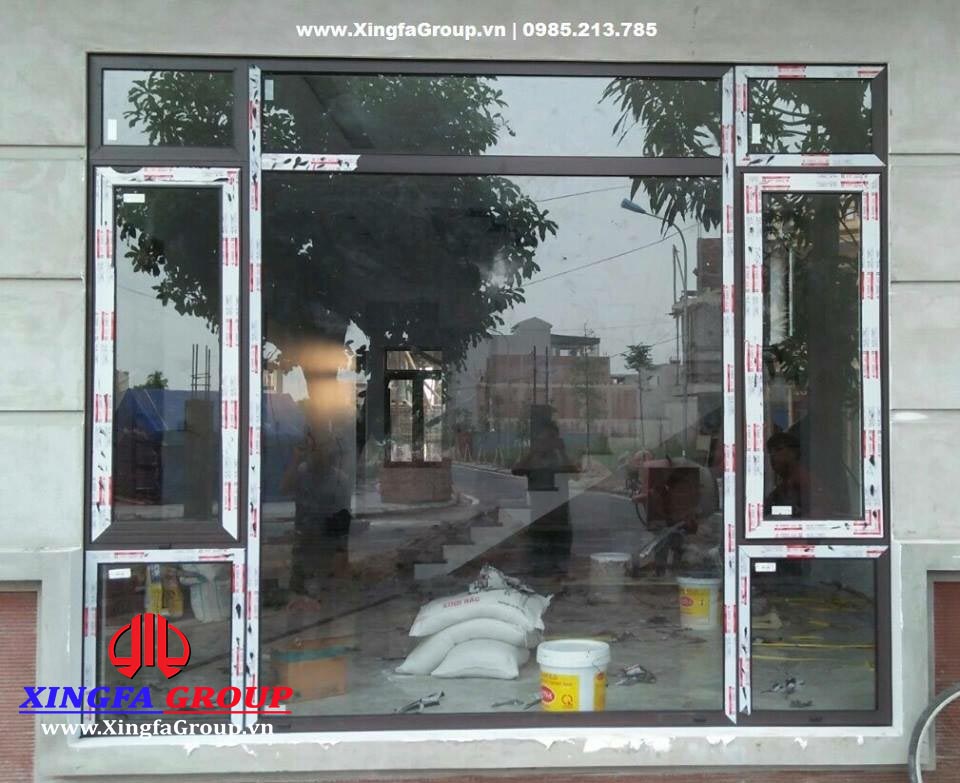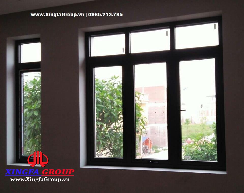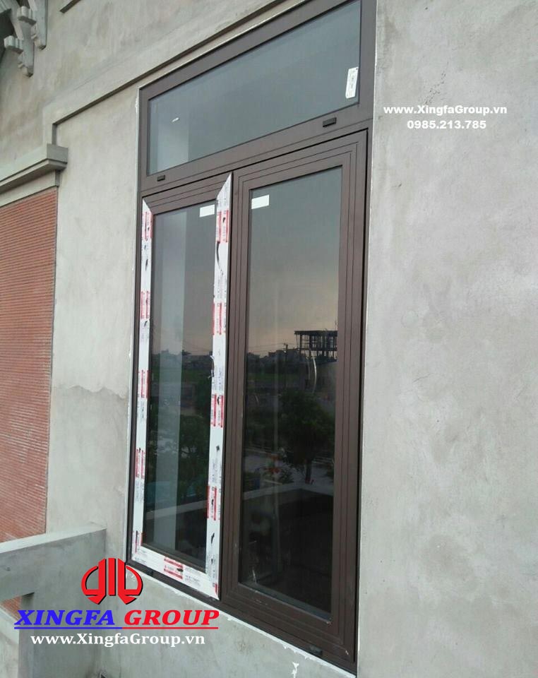 Vách kính cố định kết hợp cửa sổ mở quay nhôm Xingfa