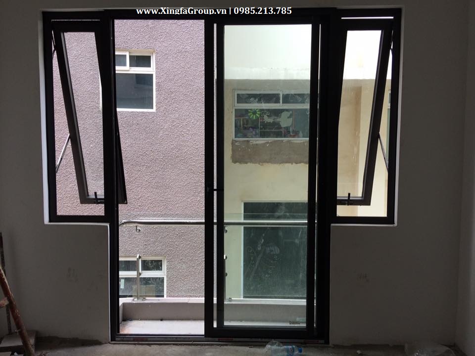 Mẫu cửa đi mở trượt kết hợp cửa sổ mở hất trên cùng một khuôn cửa nhôm Xingfa