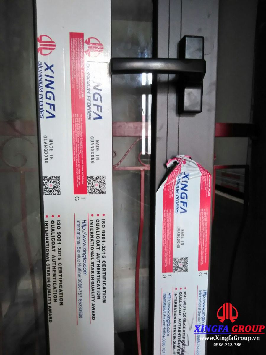 Bên ngoài mỗi cây nhôm Xingfa nhập khẩu đều có dán loại tem đỏ đặc trưng của dòng nhôm Xingfa nhập khẩu. Được in trên tem là các thông tin: tên, logo thương hiệu Xingfa; địa chỉ các nhà máy sản xuất; số hotline; các tiêu chuẩn kỹ thuật của thanh nhôm và lớp sơn tĩnh điện; thông tin về số lô nhôm mã hóa dưới dạng QR code (có thể kiểm tra bằng phần mềm WeChat)