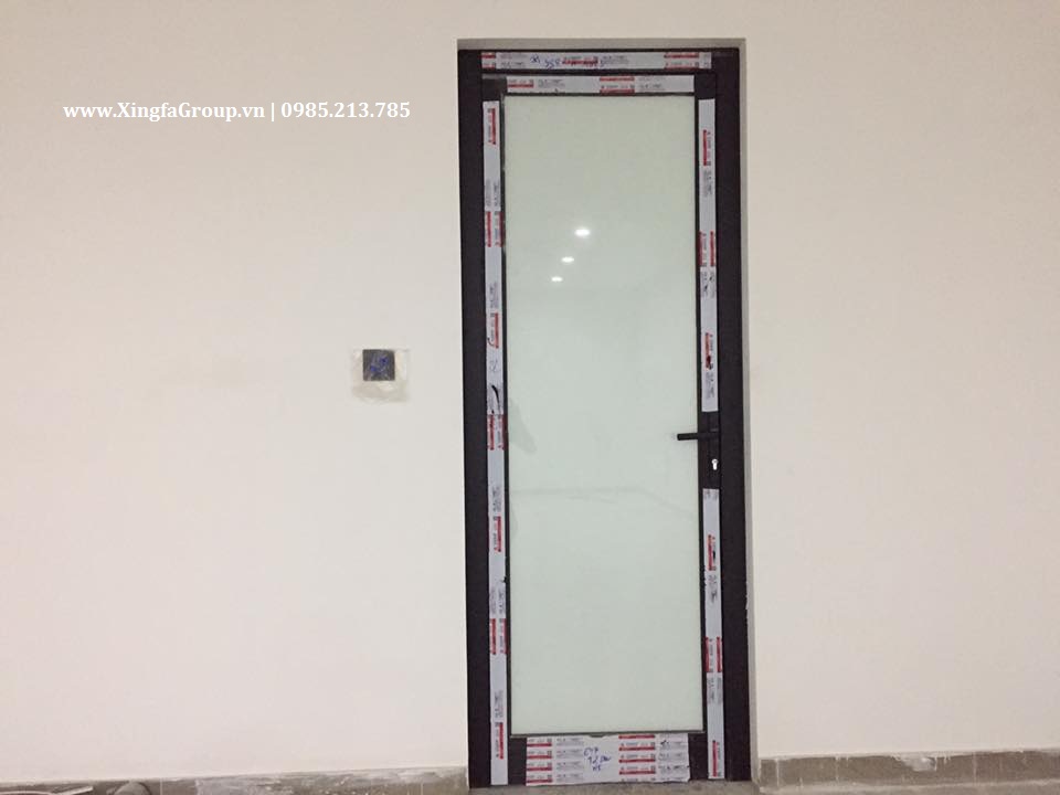 Mẫu cửa đi WC mở quay 1 cánh nhôm Xingfa hệ 55 dày 2.0mm dùng kính mờ phun sữa