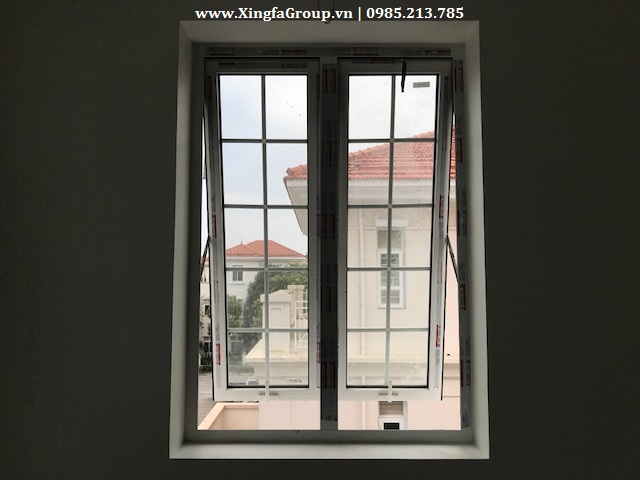 Mẫu cửa sổ mở hất 2 cánh nhôm Xingfa dùng kính hộp cách âm cách nhiệt