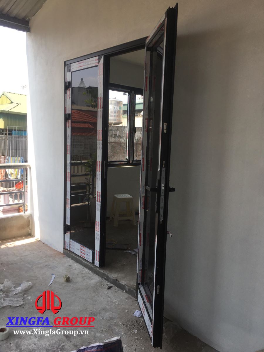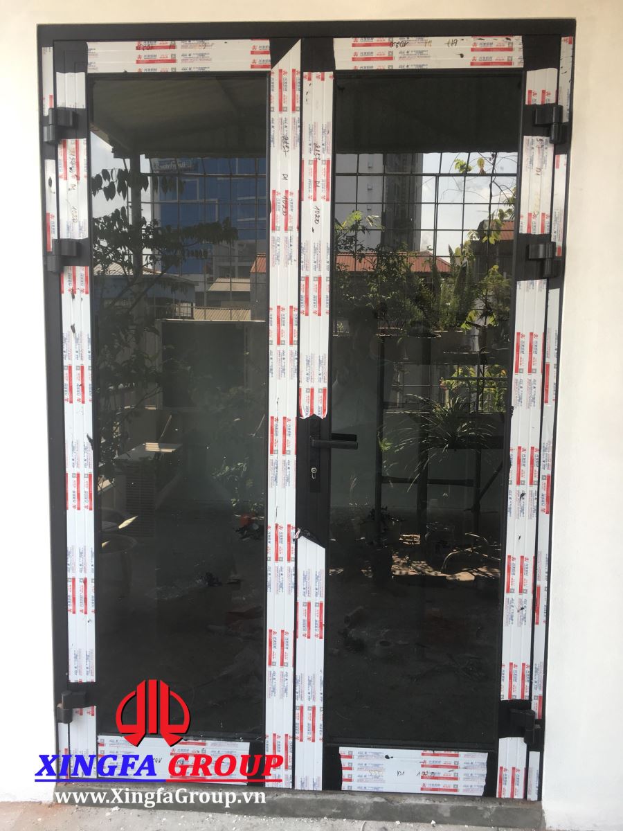 Cửa đi mở quay 2 cánh nhôm Xingfa màu đen tuyền