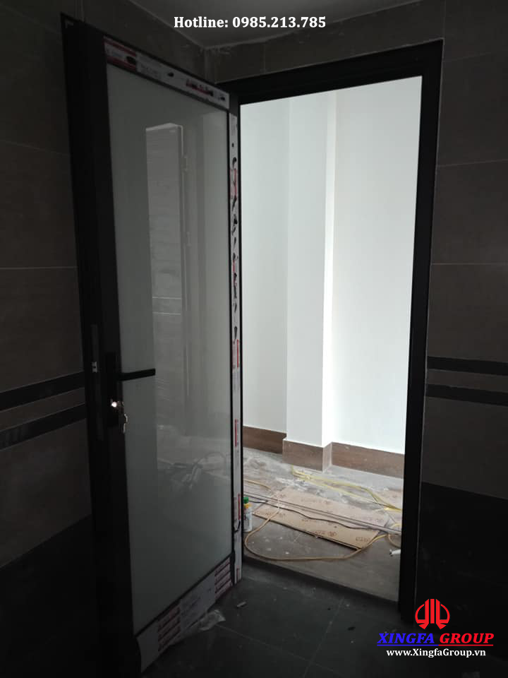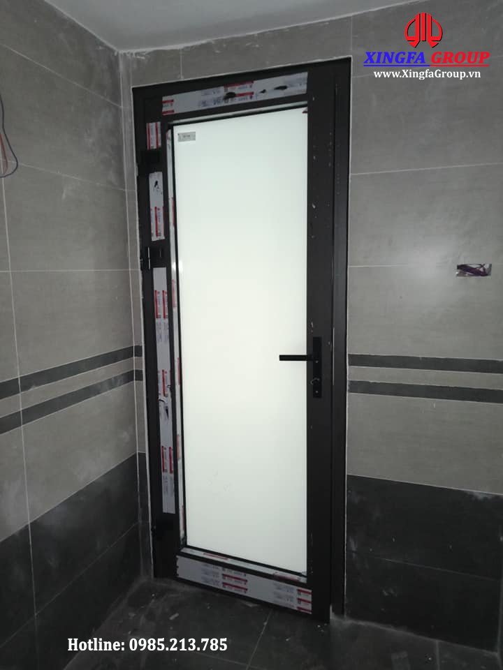 Mẫu cửa đi mở quay 1 cánh nhà vệ sinh sử dụng thanh profile nhôm Xingfa hệ 55 dầy 2.0mm.