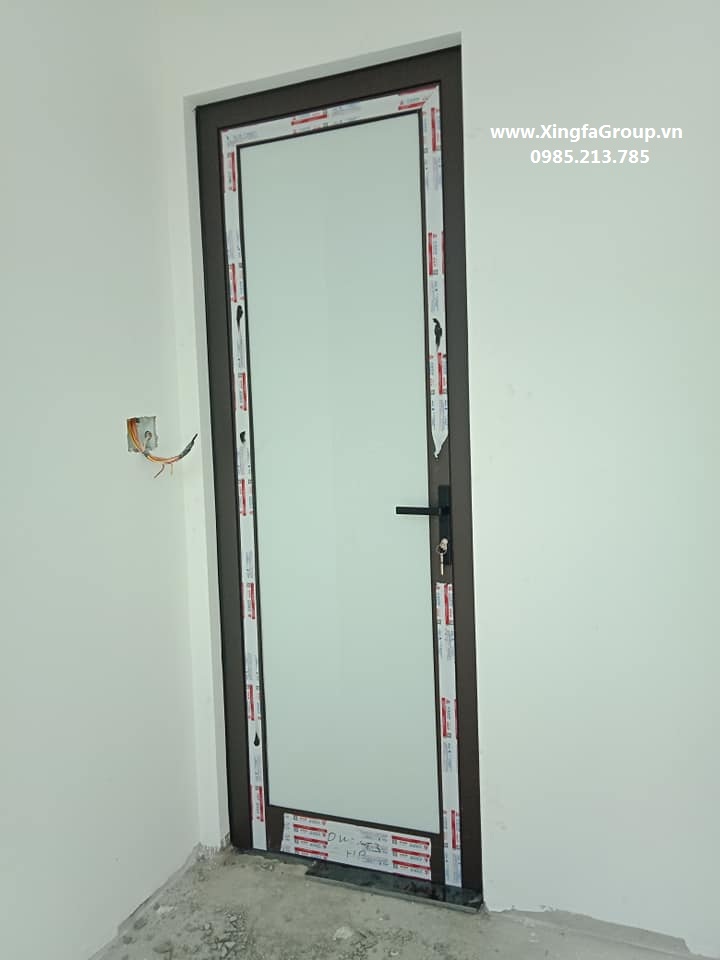 Hình ảnh bộ cửa đi nhà tắm wc nhôm Xingfa dùng kính mờ phun sữa trắng đục
