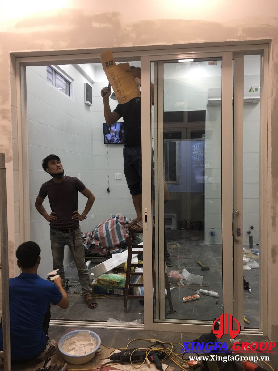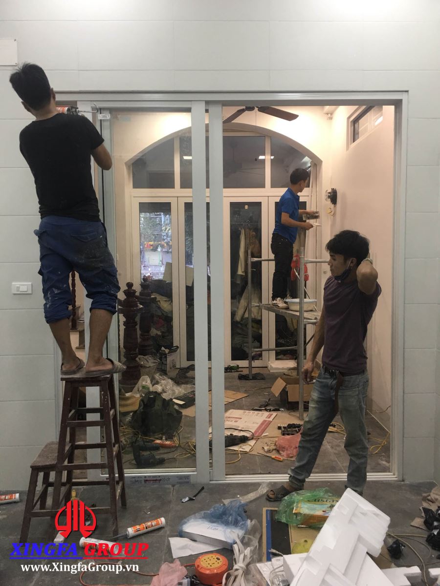 Lắp đặt cửa đi mở trượt 3 cánh trên 3 ray