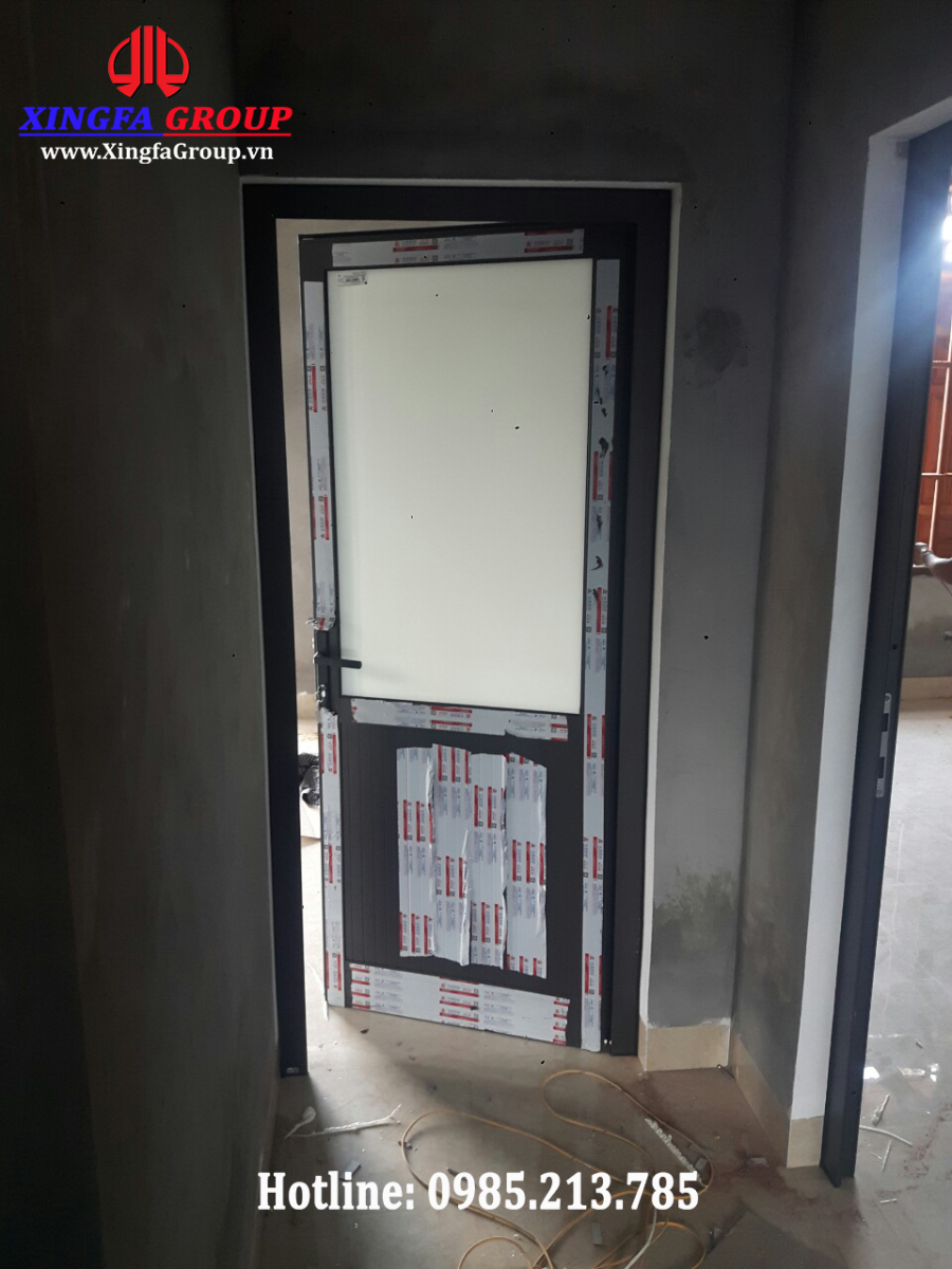 Hình ảnh mẫu cửa đi thông phòng mở quay 1 cánh được lắp ghép bằng nhôm Xingfa nhập khẩu chính hãng hệ 55 dầy 2.0mm