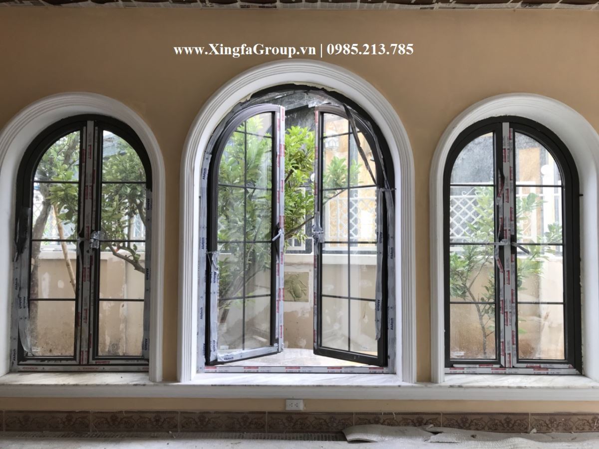 Cửa sổ mở quay 2 cánh uốn vòm bằng nhôm Xingfa nhập khẩu