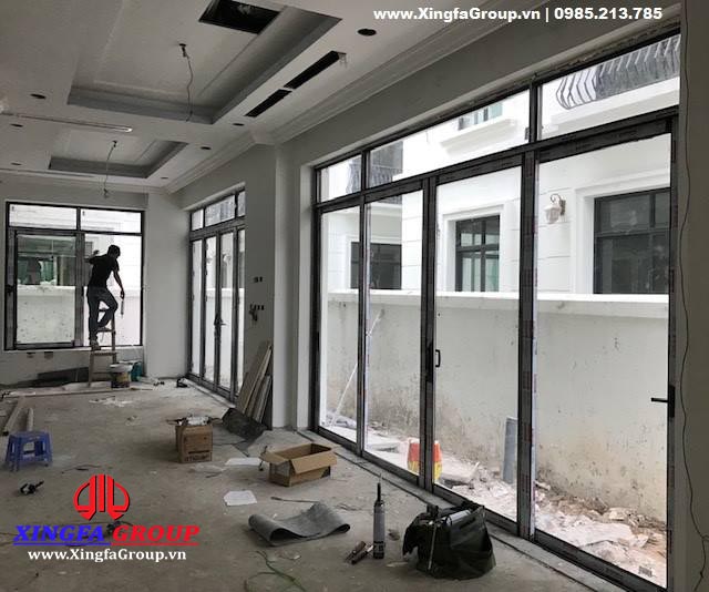 Công trình sử dụng toàn bộ hệ thống cửa bằng nhôm Xingfa nhập khẩu chính hãng 100% màu nâu sần ánh kim, kết hợp với phụ kiện Roto cao cấp, nhập khẩu hoàn toàn từ CHLB Đức, cùng với kính dán an toàn phôi Việt Nhật sản xuất tại nhà máy kính Hải Long.