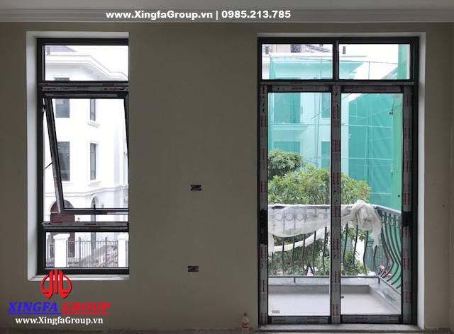 Cửa sổ mở hất nhôm Xingfa kết hợp vách kính cố định