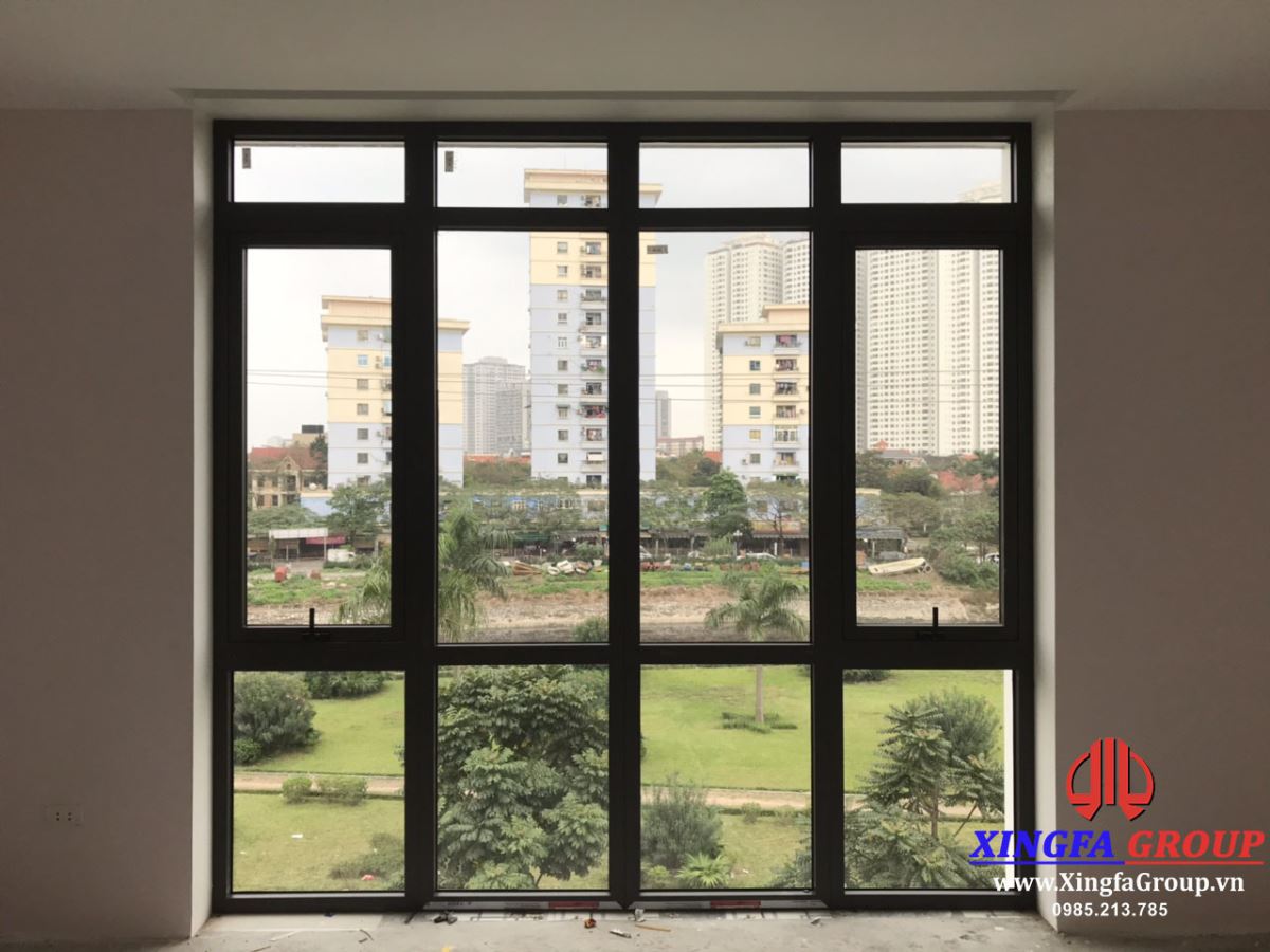 Vách kính kết hợp với cửa sổ mở hất nhôm Xingfa