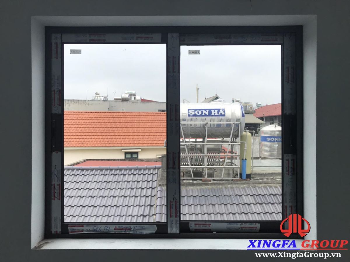 Cửa sổ mở trượt 2 cánh nhôm Xingfa có thể mở tối đa 1/2 diện tích ô cửa