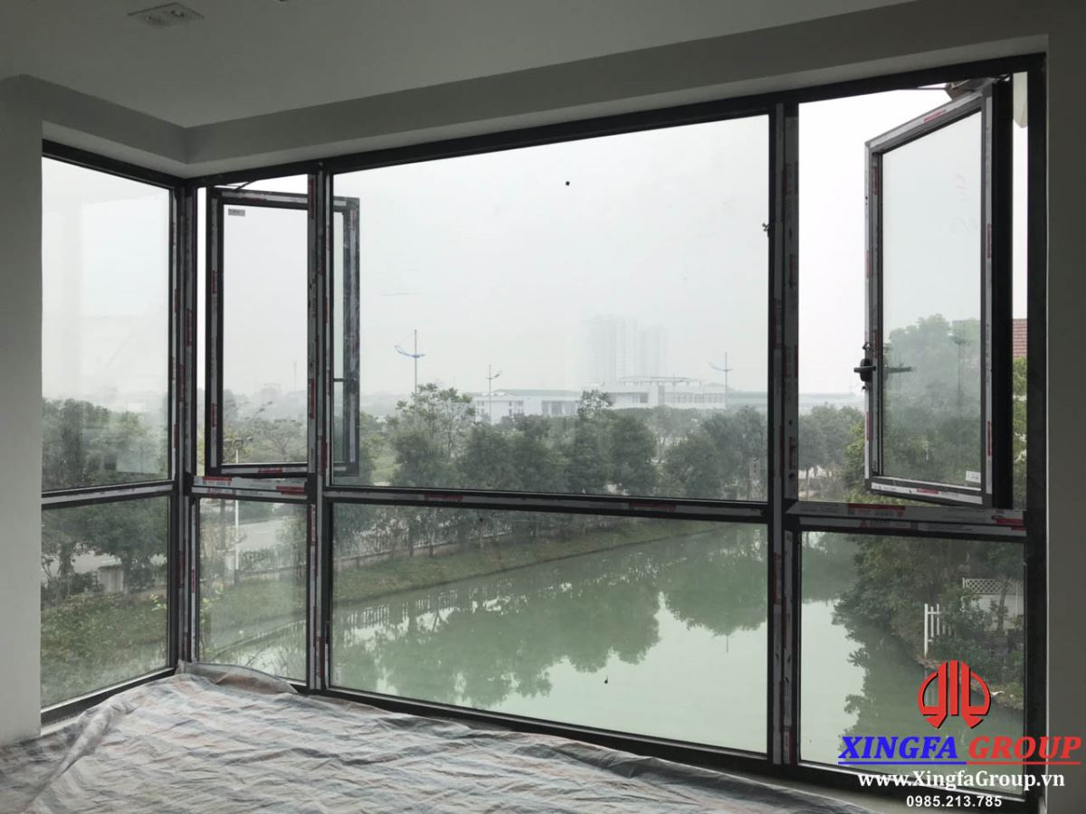 Vách kính kết hợp với cửa sổ mở quay và mở hất nhôm Xingfa