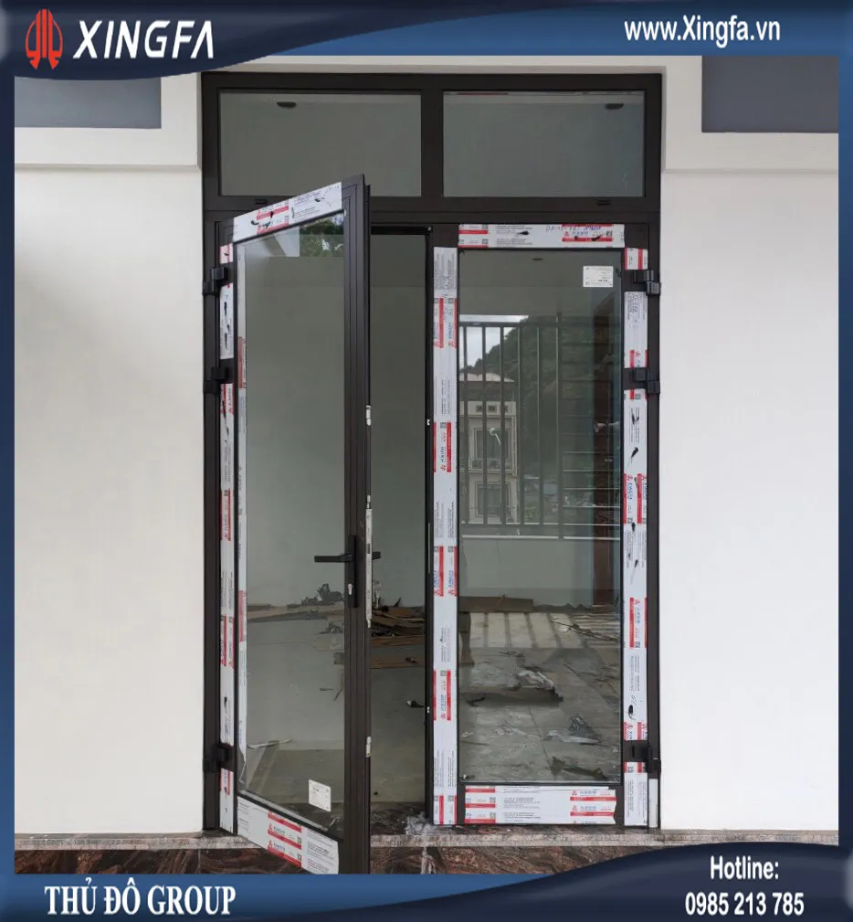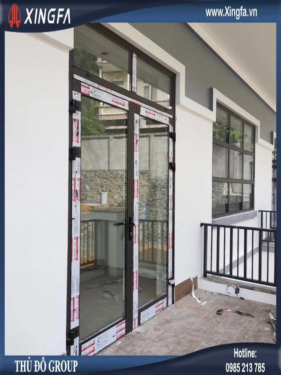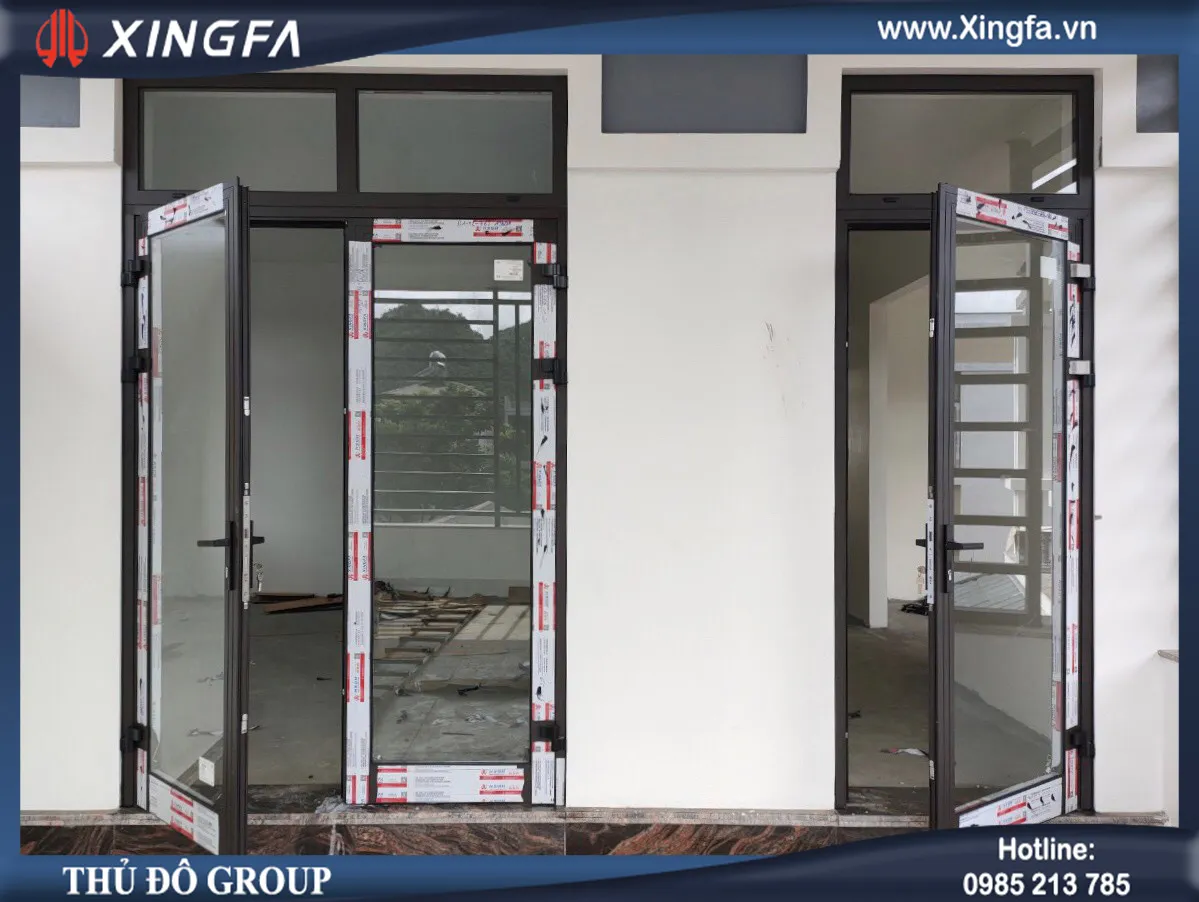 Công trình sử dụng mẫu cửa đi mở quay 1 cánh và cửa đi mở quay 2 cánh nhôm Xingfa hệ 55 dày 2.0mm