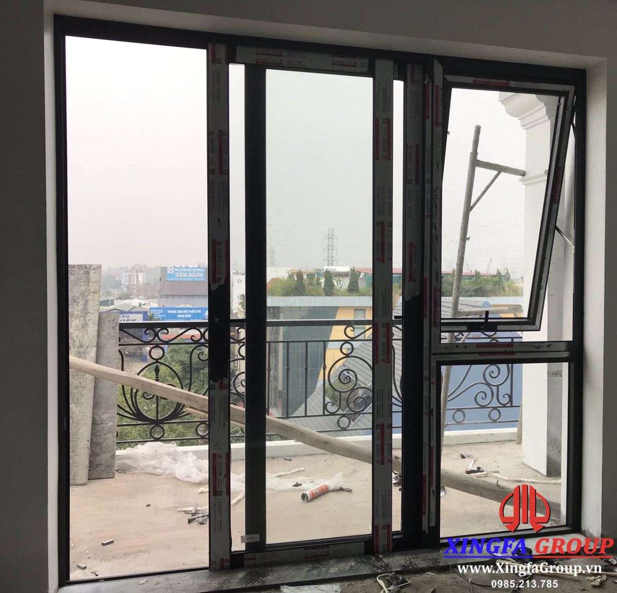 Vách kính cố định và cửa sổ mở quay đều sử dụng thanh nhôm Xingfa hệ 55