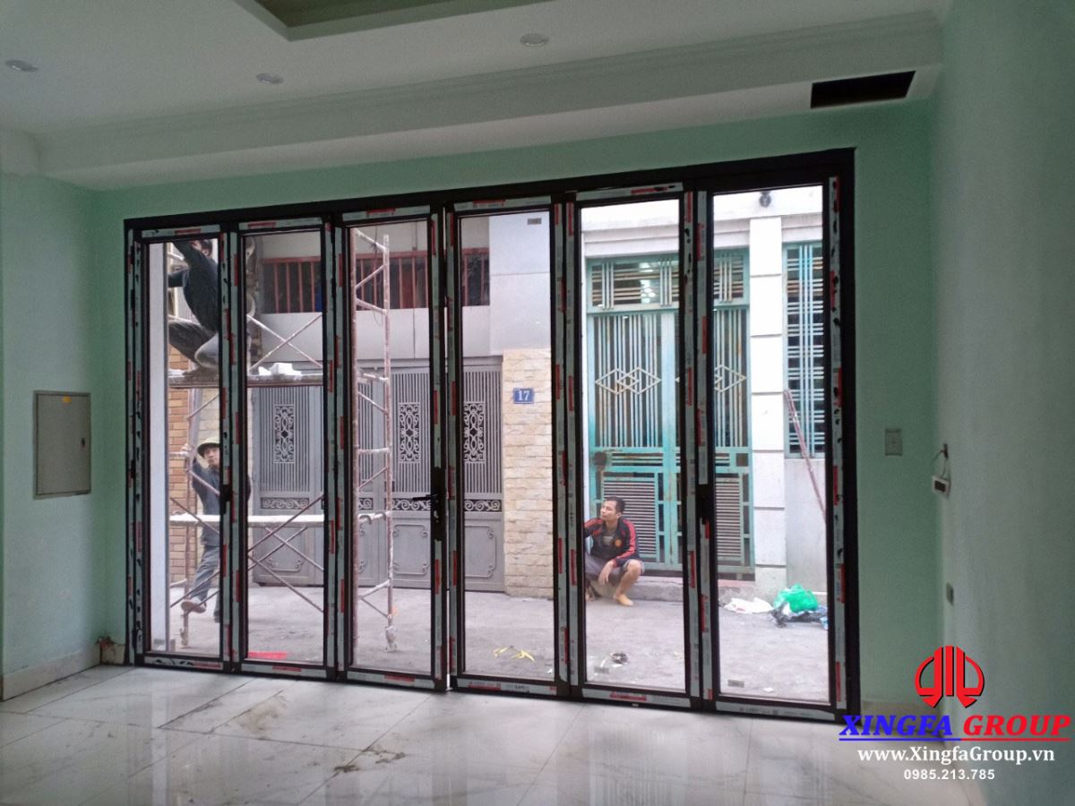 Bộ cửa đi chính mở xếp trượt gấp 6 cánh của công trình nhà chị Tuyên