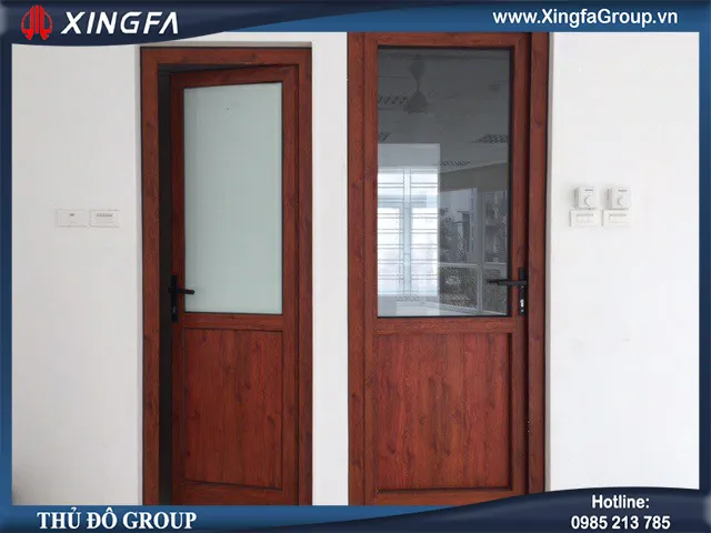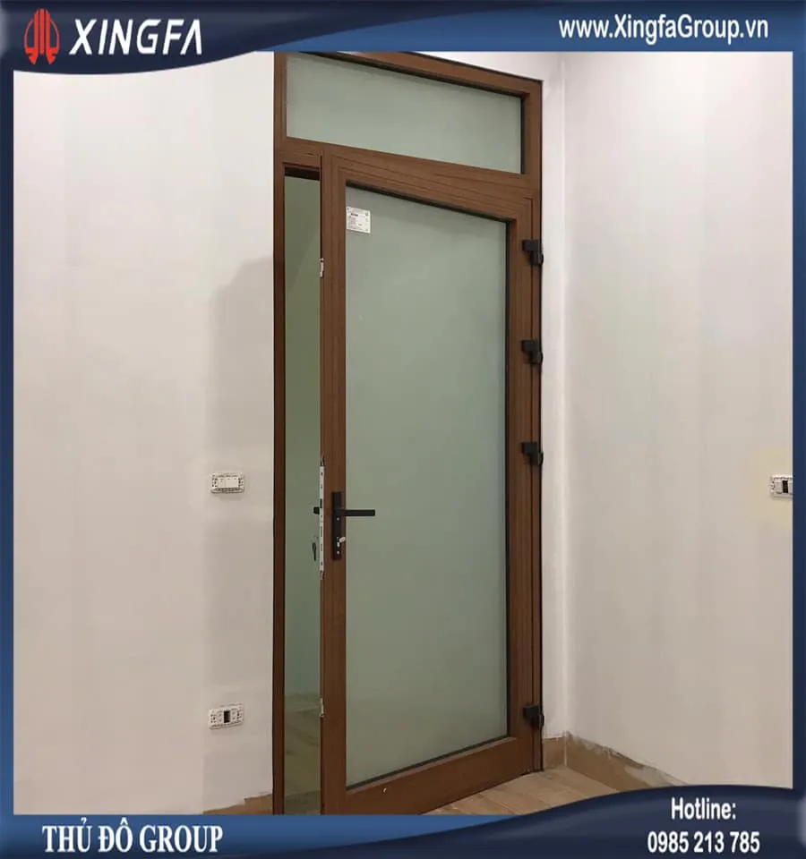 Mẫu cửa đi mở quay 1 cánh nhôm hệ Xingfa Zhongkai nhập khẩu mầu vân gỗ