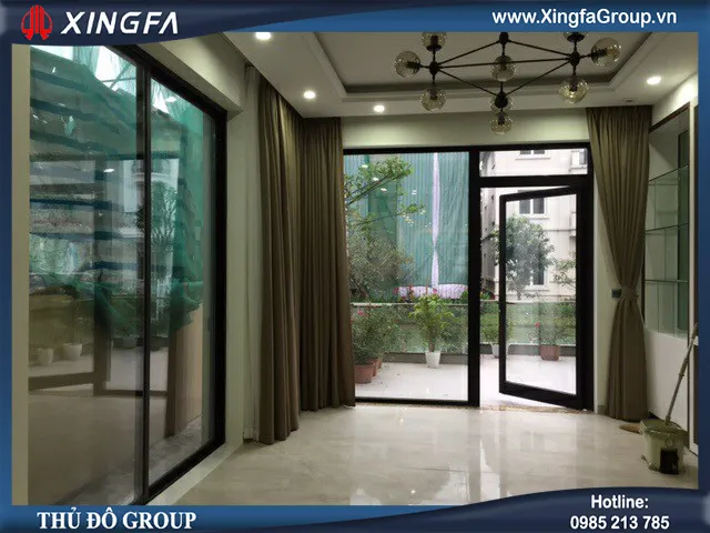 Xingfa Group thi công lắp đặt công trình sử dụng cửa nhôm Xingfa nhập khẩu chính hãng 100% (mẫu cửa đi mở quay 1 cánh đi ra ban công tầng 2) tại biệt thự liền kề Tổng cục 5 - Yên Xá, Thanh Trì, Hà Nội