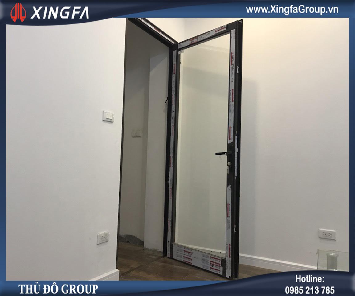 Công trình lắp đặt cửa nhôm Xingfa với mẫu thiết kế hệ cửa đi mở quay 1 cánh tại nhà anh Minh ở Sài Đồng, Long Biên, Hà Nội