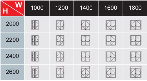 Mẫu cửa đi nhôm Xingfa mở quay 2 cánh (chia thêm nhiều đố cửa)