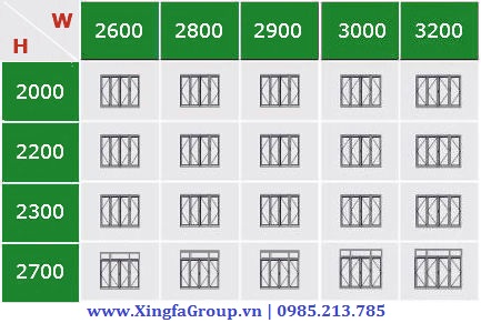 + Thiết kế làm hệ cửa đi mở quay 1 cánh, cửa Xingfa 2 cánh, 3 cánh, 4 cánh..