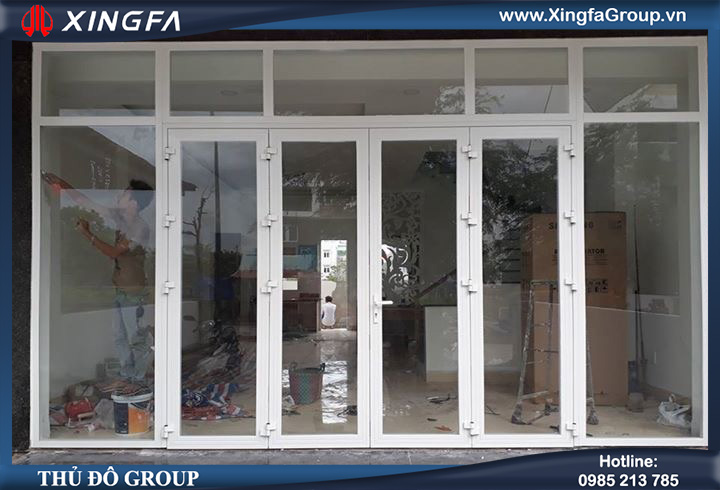 Thủ Đô Group thi công lắp đặt công trình sử dụng cửa nhôm Xingfa nhập khẩu mới mẫu cửa đi 4 cánh mở quay cho hệ cửa đi chính mặt tiền tại KĐT Định Công, Hoàng Mai, Hà Nội