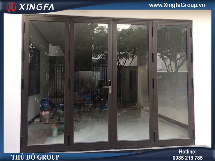 Mẫu cửa nhôm Xingfa 4 cánh sử dụng kính hộp 2 lớp cách âm cách nhiệt, chống nóng chống ồn