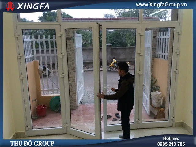 Thủ Đô Group thi công lắp đặt mẫu cửa đi mở quay 4 cánh nhôm Xingfa nhập khẩu ở tầng 1 và tầng 2 tại nhà chị Vinh ở Lô BT05, Khu đô thị Bắc Châu Giang, Lam Hạ, Phủ Lý, tỉnh Hà Nam