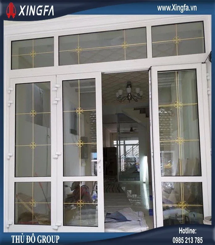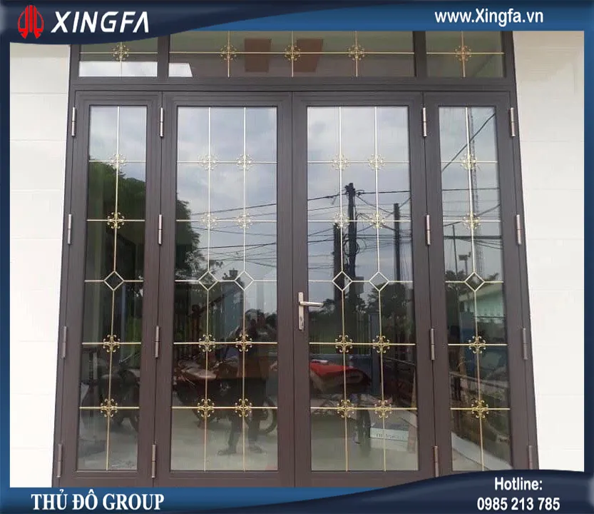 Mẫu cửa đi mở quay 4 cánh nhôm Xingfa chia ô thoáng phía trên