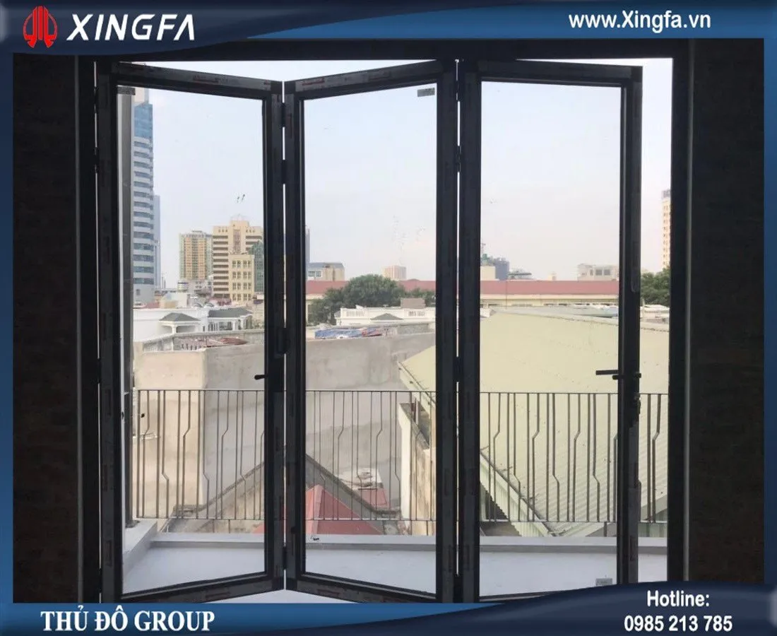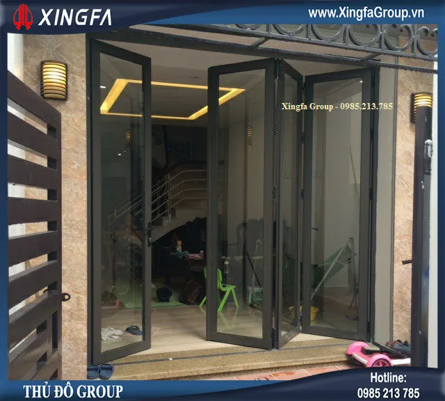 Mẫu cửa đi nhôm Xingfa mở xếp trượt gấp 3 cánh