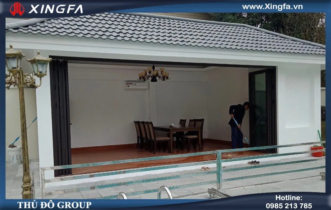 Mẫu cửa nhôm Xingfa nhập khẩu tem đỏ Quảng Đông mở xếp gấp 6 cánh